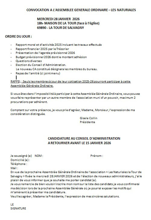 Convocation à l’ASSEMBLEE GENERALE ORDINAIRE